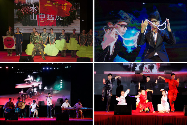 多才多艺的参训学员接连带来脱口秀《小亮的故事》、无声话剧《军旗不倒》、小品《军训归来》、魔术《魔手神彩》、民族乐器演奏《喜洋洋》、西洋乐器演奏《悦动的音符》以及武术《精忠报国》,节目高潮跌宕,将汇演一次次推向高潮。