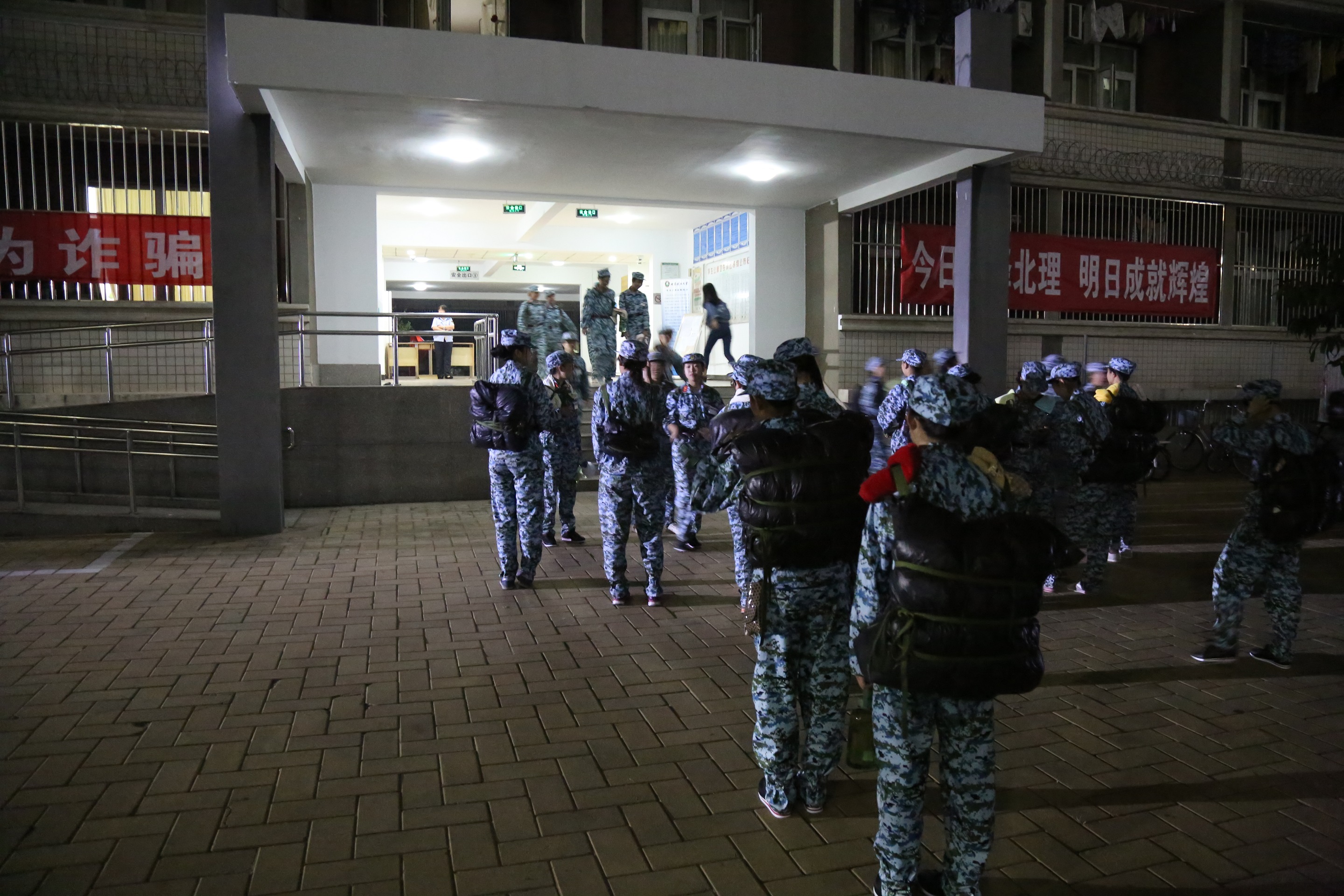 哨声一响,立刻打好背包,下楼集合。(摄影:摄制组)