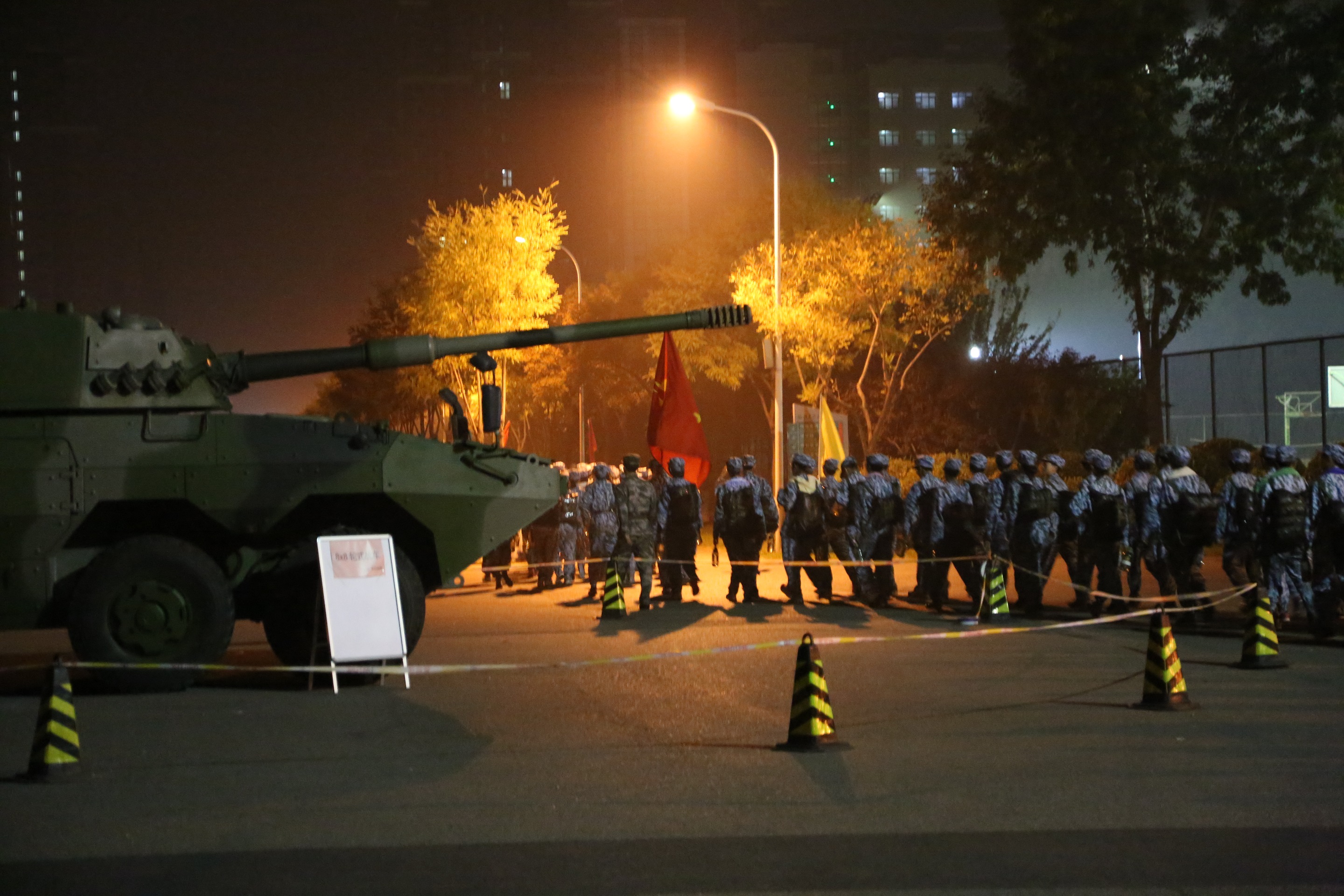 夜色下的铁甲雄风,夜色下的行进女兵。(摄影:摄制组)
