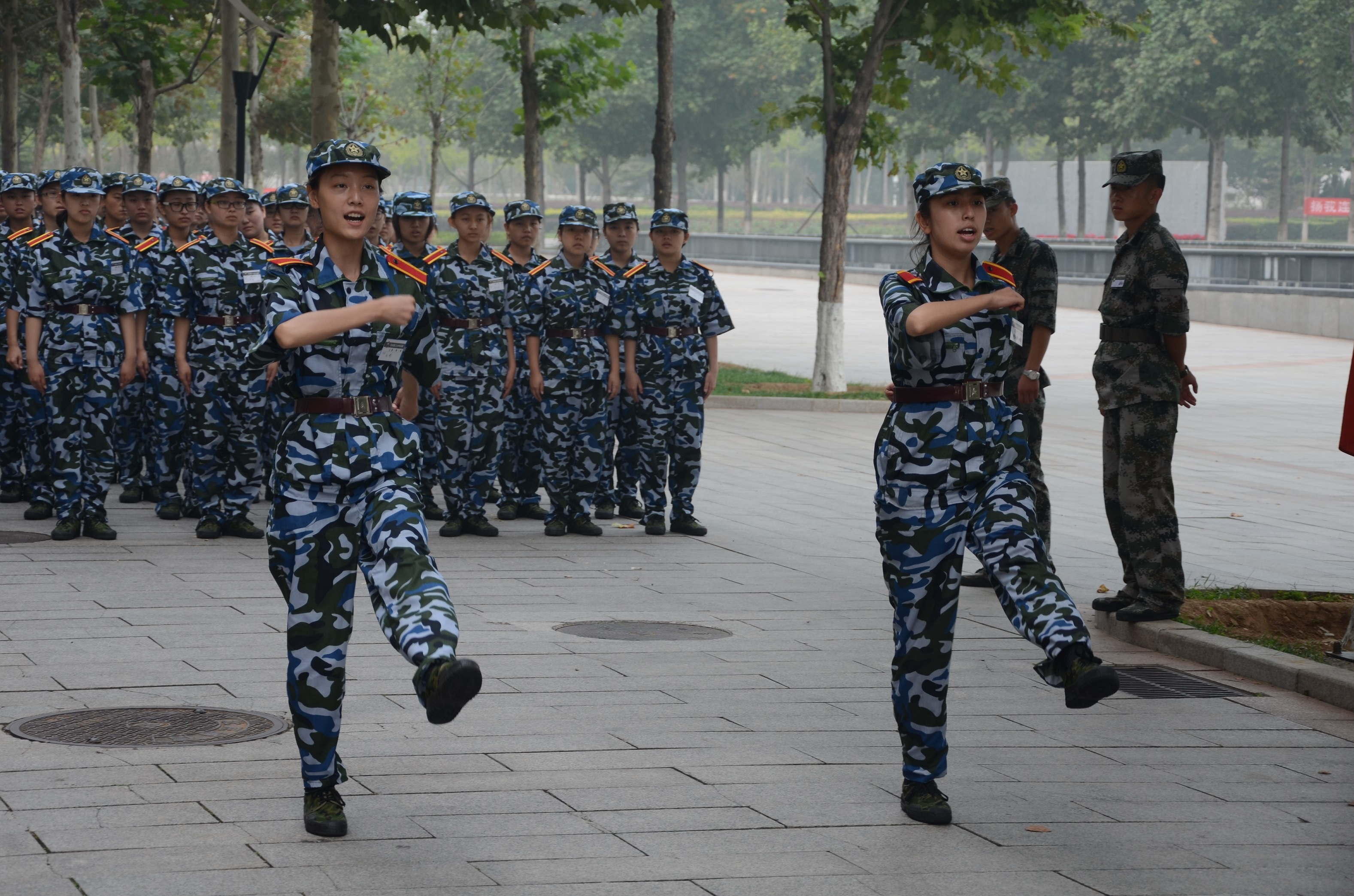 踏着坚实的脚步前进,干净的方砖路上,镌刻着矫健的身影。姐妹们,烈日不怕,有我陪着你。(摄影:1连)