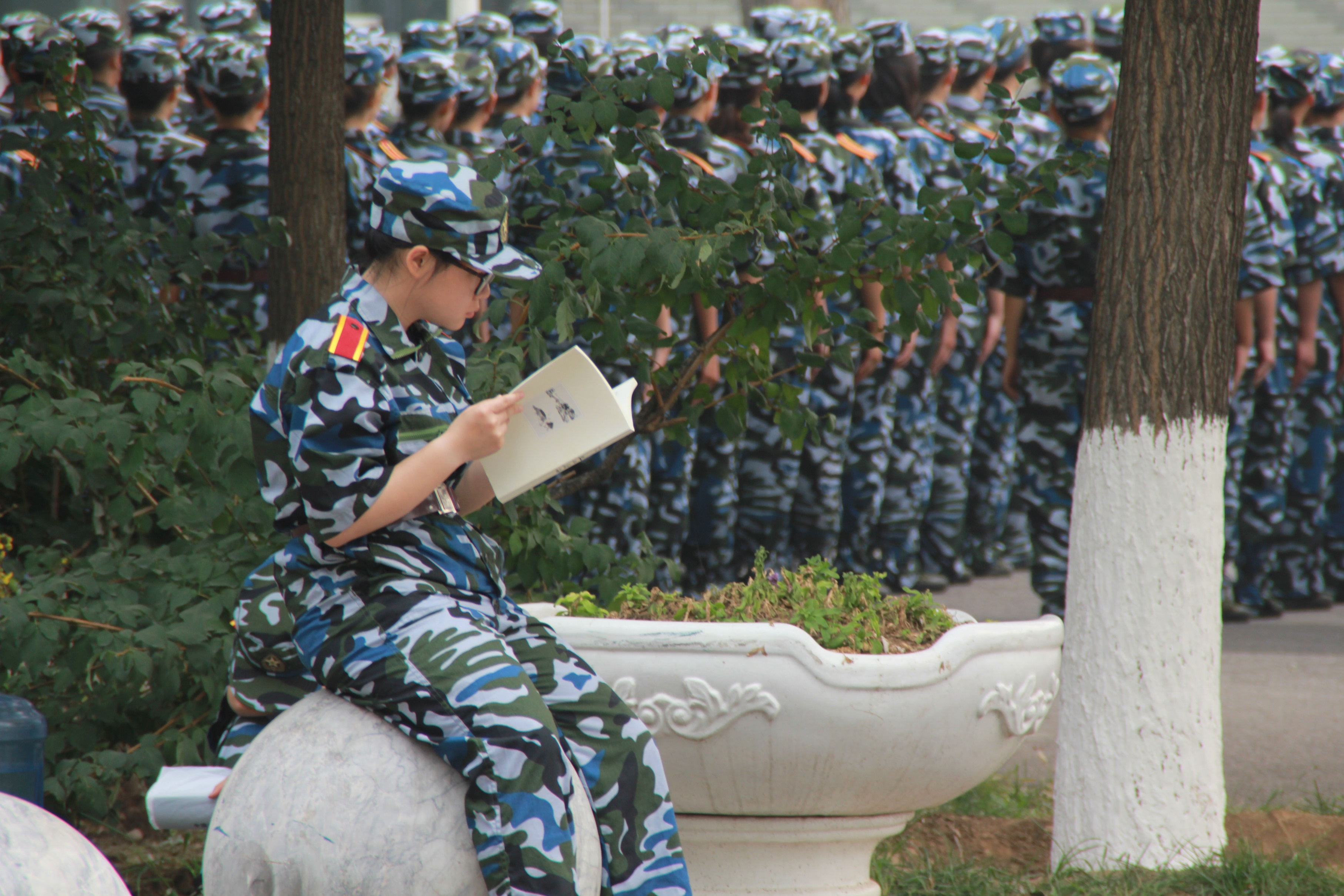 那散发出的满纸墨香,荡涤着年少的心;不远处的钢铁长城,铸成一道亮丽的风景。(摄影:20连)