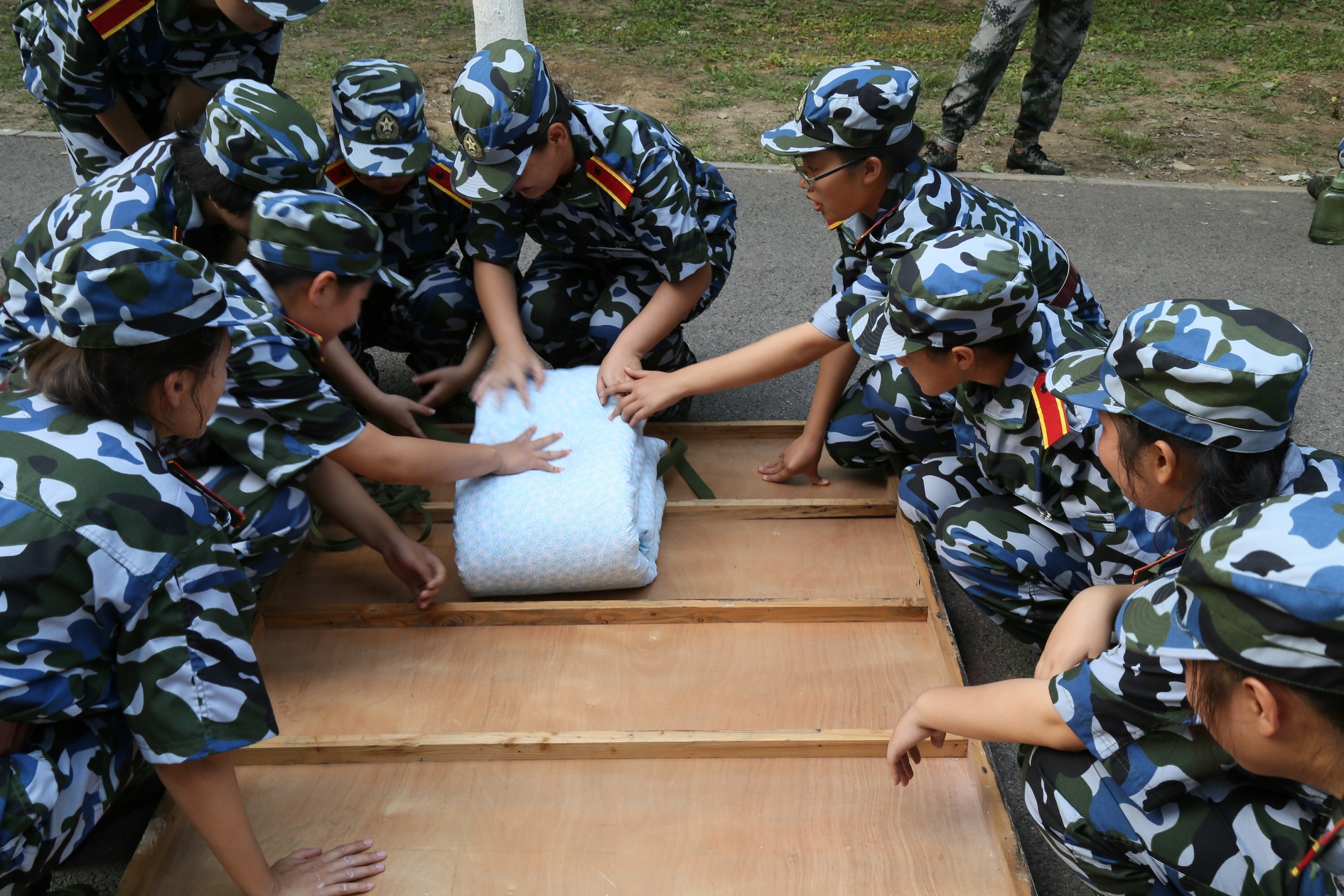 打背包,备拉练。路途艰辛我无畏,星辰作伴我成长。(摄影:16连)