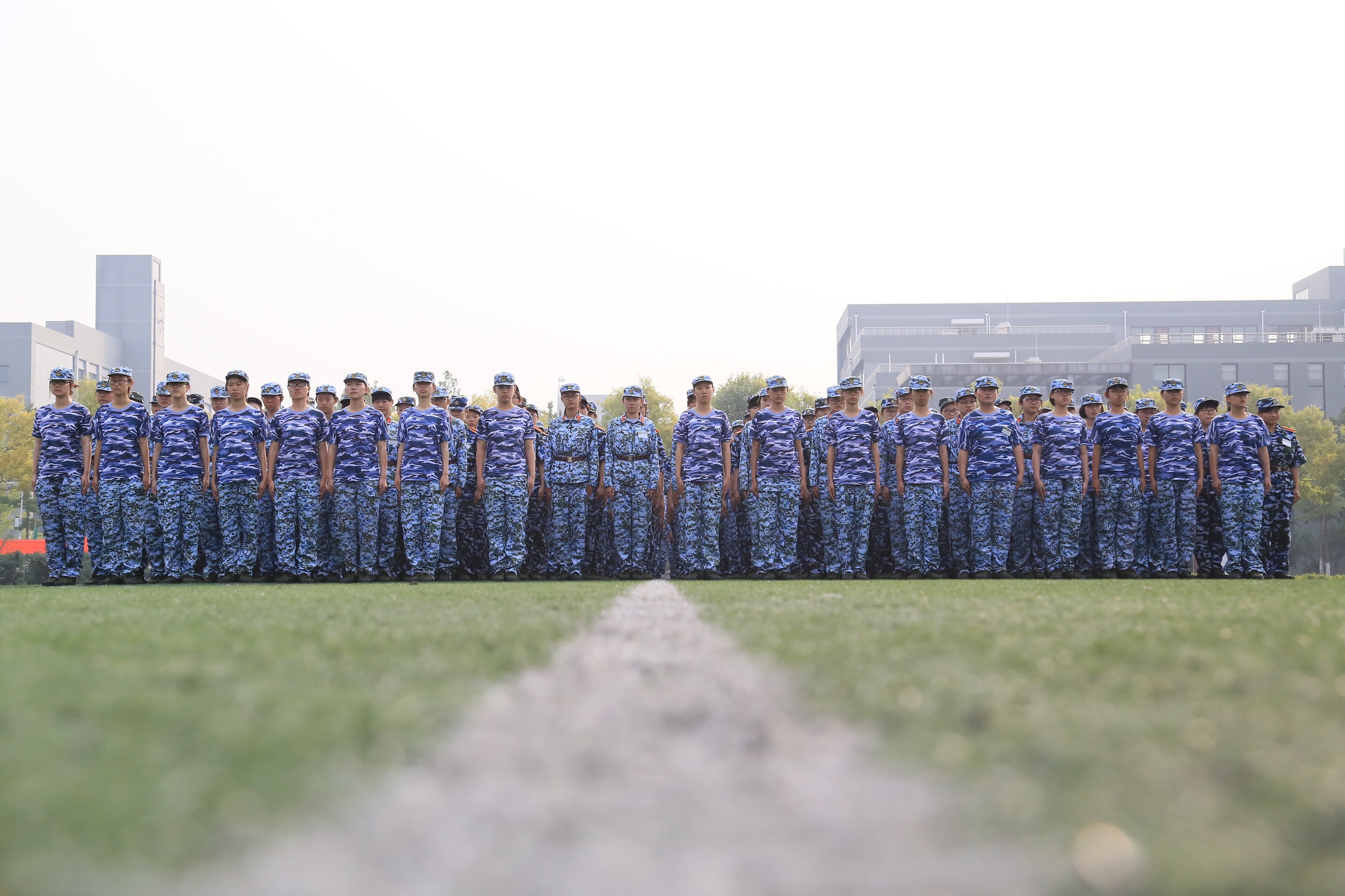 绿茵场上,战士们严阵以待,沉毅的目光凝视前方,随时捍卫我泱泱中华。(摄影:4连)