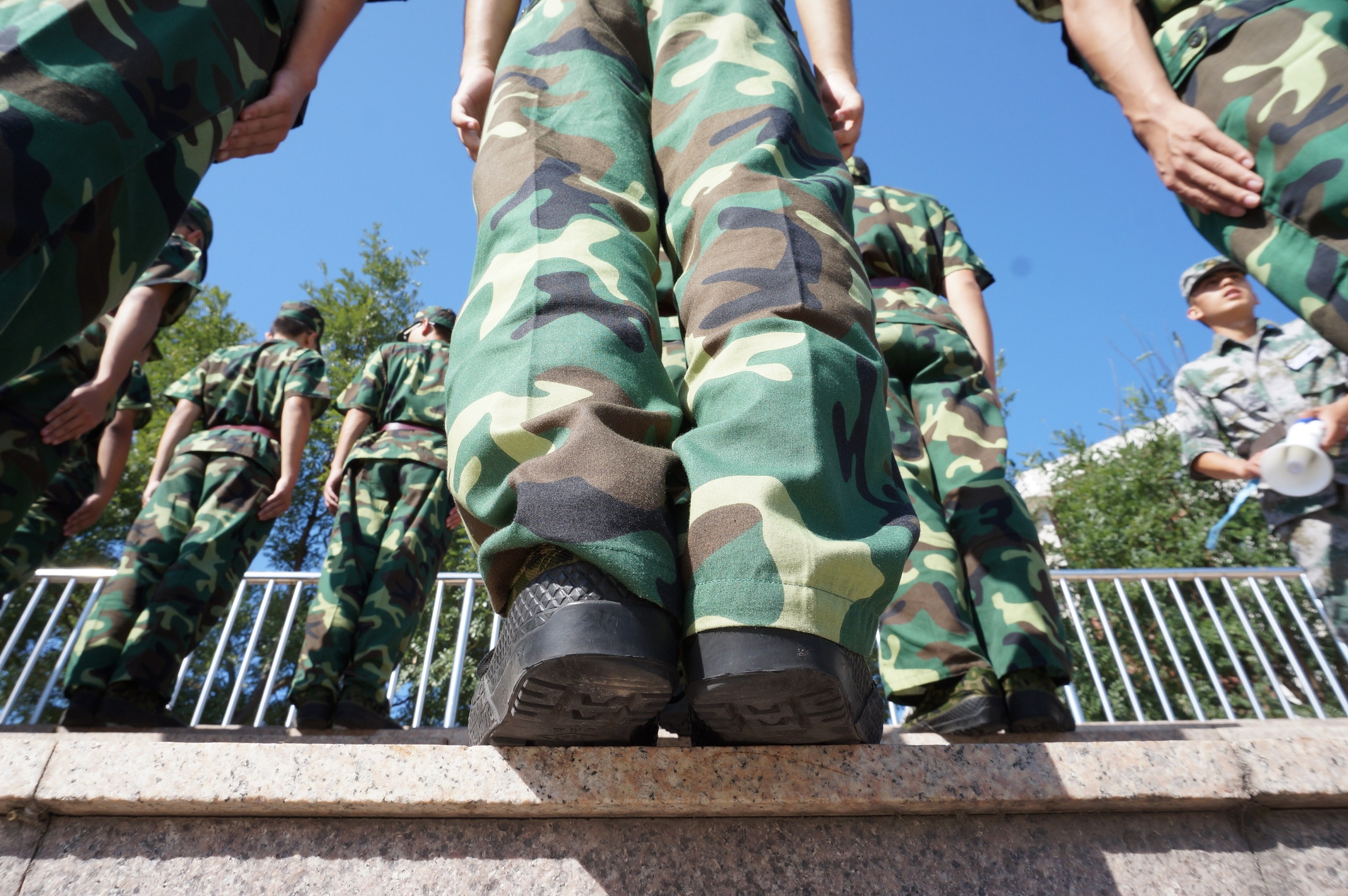 烈日把大理石台阶烤得发烫,但只要我站在这里,就要像青松一样挺拔而坚定。(摄影:19连)