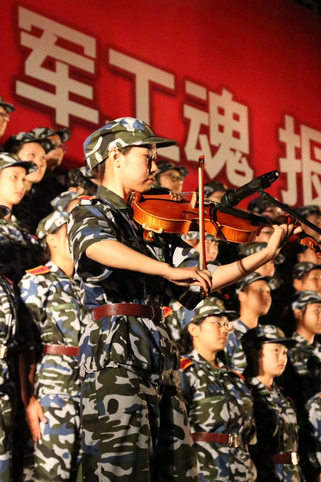 合唱比赛中,我们放声歌唱,歌声高亢嘹亮,响彻云霄,那是斗志昂扬的属于我们的旋律。(摄影:5连)