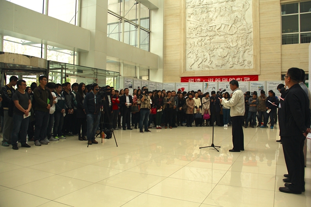 校第11届“世纪杯”竞赛特等奖作品作者、自动化学院2011级本科生李金库同学代表参赛学生发言。各学院团委书记、本届比赛指导教师和作者代表参加了开幕式。