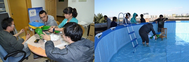 北京理工大学自动化学院“组合导航与智能导航实验室”为团队提供了优越的科研条件。一个全天候对内开放的创新实验室,一个宽敞的智能车实验场地,专门构建 的两栖蛙板机器人水陆实验环境,实验仪器、器材齐备应有尽有。同时,实验室还与多个企业和研究所建立了长期稳定的合作关系,为团队的科研创新创造了良好的 科研环境和学术氛围。在三位老师的悉心指导下,智能地面移动机器人创新团队攻克了一个又一个难关,在科研创新的道路上不断前行。