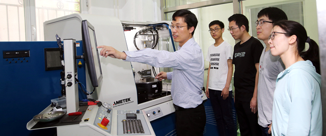 在学校“爱才、惜才、容才”的环境中,在“理工融合”“军民融合”的大氛围中,周天丰扎根这片学术沃土,与光电学院、材料学院、物理学院、生命学院等进行交叉合作,共享资源。“交叉研究能够打开双方的思路,实现优势互补。“在完成‘青年973’项目‘玻璃微纳阵列高效超精密模压制造基础研究’中,升级系统需要设计与加工共同发力,光电学院在设计上给予支持,我在加工方面给予保障,将双方优势相结合,产品设计、制造质量得以全面保障。”周天丰对学院、学科之间的合作给予高度评价。
